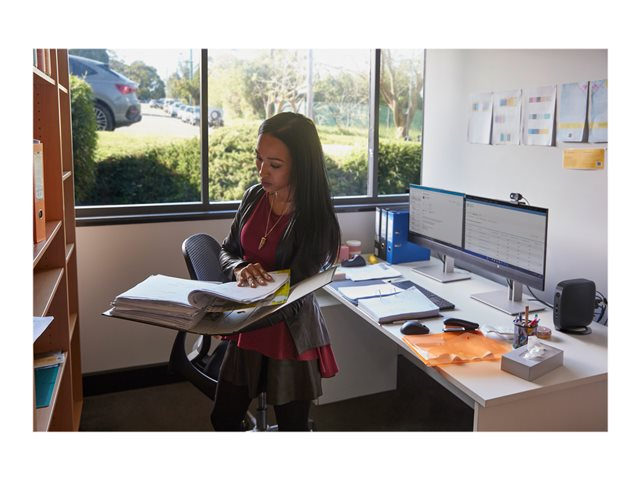 - När en intensiv arbetsdag kräver bästa möjliga komfort är det lätt att hitta den med justering i fyra riktningar som optimeras med hjälp av guiden för ergonomisk montering. Håll ögonen bekväma med en skärm som filtrerar bort blått ljus med HP Eye Ease – nu även förbättrad med en uppdateringsfrekvens på 75 Hz.