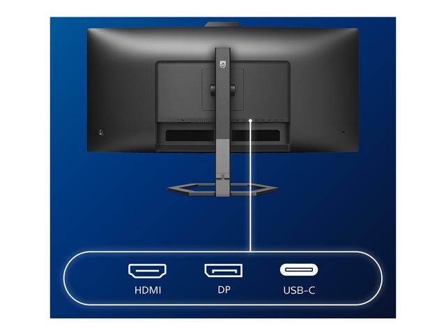 Den här Philips-skärmen är utformad för distansarbete. Den integrerade webbkameran på 5 MP ger tydliga bilder och den brusreducerande mikrofonen ser till att du hörs klart och tydligt.