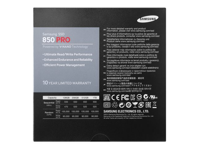 Samsung 850 PRO MZ-7KE1T0BW - SSD - krypterat - 1 TB - inbyggd - 2.5" - SATA 6Gb/s - buffert: 1 GB - Self-Encrypting Drive (SED), TCG Opal Encryption 2.0