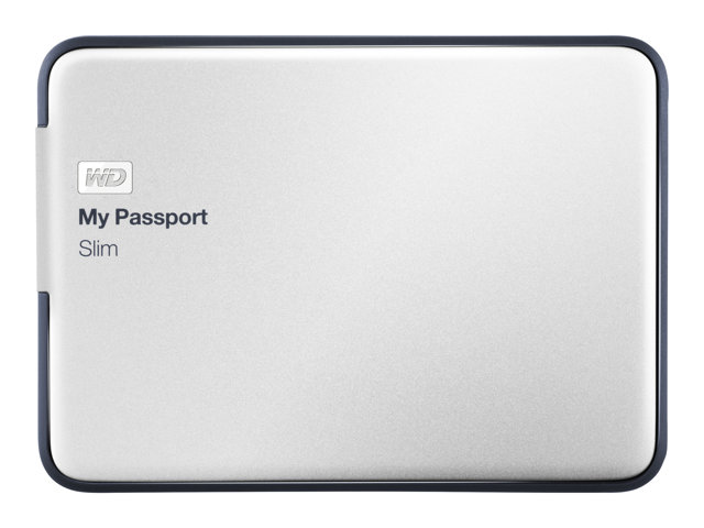 My Passport Slim portable hard drive features WD SmartWare Pro backup software for local or cloud backup, a beautiful, ultra-slim metal design, the blazing speed of USB 3.0 connectivity and the security of password protection with hardware encryption.
