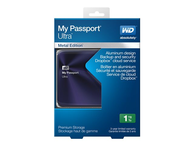 WD My Passport Ultra Metal Edition WDBTYH0010BBA - Hårddisk - krypterat - 1 TB - extern (portabel) - USB 3.0 - blåsvart