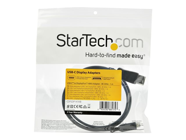 StarTech.com 3.3ft/1m USB C to DisplayPort 1.4 Cable, 4K/5K/8K USB Type-C to DP 1.4 Alt Mode Video Adapter Converter, HBR3/HDR/DSC, 8K 60Hz DP 1.4 Monitor Cable for USB-C and Thunderbolt 3 - USB-C to DP 8K Cable (CDP2DP141MB) - Extern videoadapter - USB-C - DisplayPort - svart - för P/N: TB4CDOCK