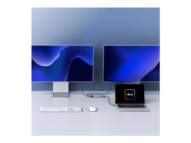 HyperDrive Dual - Videokort - 24 pin USB-C till HDMI, 24 pin USB-C - USB-strömförsörjning (100W), 4K30 Hz (HDMI bildskärm 2), 4K 60 Hz (HDMI bildskärm 1)