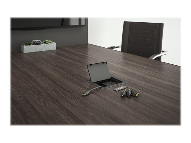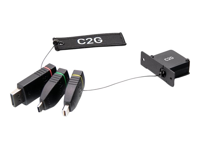 C2G Retractable Table Box Mount 4K HDMI Adapter Ring with Color Coded Mini DisplayPort, DisplayPort, and USB-C - Videoadaptersats - svart - stöd för 4K