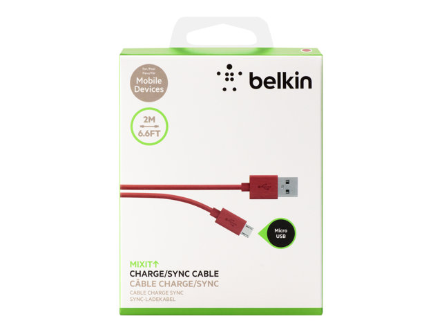 Belkin MIXIT - USB-kabel - mikro-USB typ B (hane) till USB (hane) - 2 m - röd F2CU012BT2M-RED