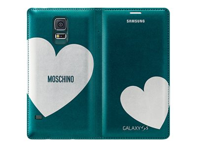 Samsung Flip Wallet EF-WG900R - Moschino Edition - vikbart fodral för mobiltelefon - grön/silverhjärta - för Galaxy S5, S5 Neo EF-WG900RGEGWW