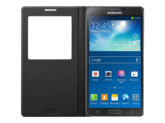 Samsung S View EF-CN900B - Vikbart fodral för mobiltelefon - gagatsvart - för Galaxy Note 3 EF-CN900BBEGWW
