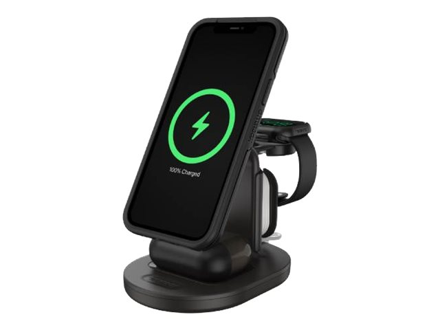 Innovative 3-in-1 Charger for MagSafe powers all of your Apple devices in one sleek, space-saving stand. Perfect for home and office, 3-in-1 Charging Station keeps your devices organized in one place. And, the Charging Station is designed for interaction with your phone while it charges.