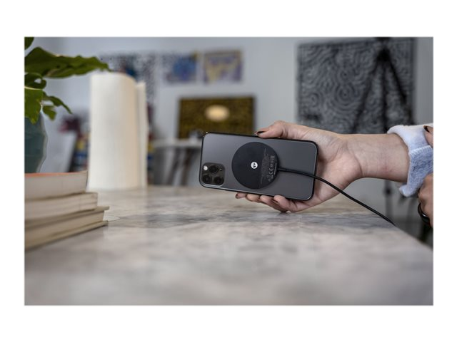- Attach the included metallic ring to any smartphone to make it compatible with the snap+ wireless charger.