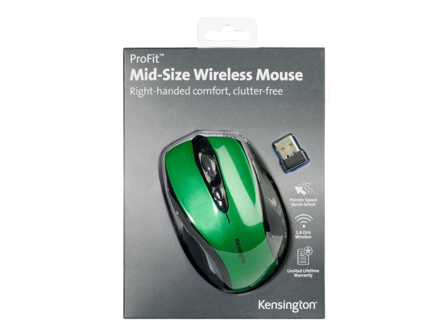 Kensington Pro Fit Mid-Size - Mus - högerhänt - optisk - trådlös - 2.4 GHz - trådlös USB-mottagare - Smaragdgrön K72424WW