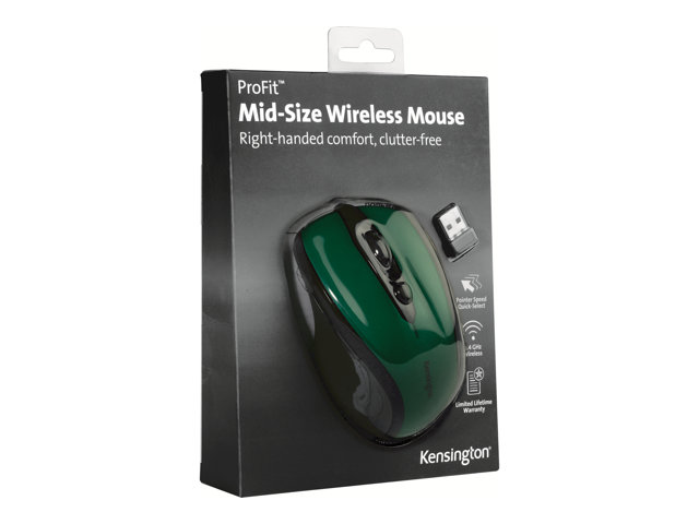 Kensington Pro Fit Mid-Size - Mus - högerhänt - optisk - trådlös - 2.4 GHz - trådlös USB-mottagare - Smaragdgrön