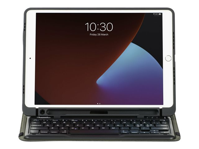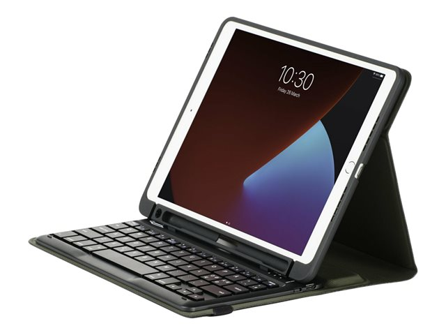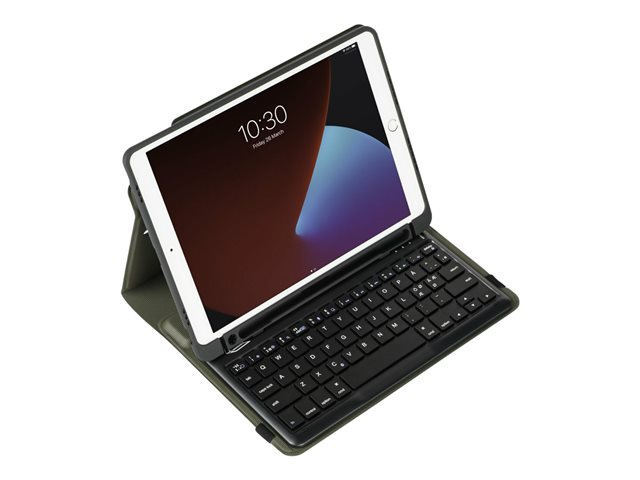 Targus Pro-Tek Education - Tangentbord och foliefodral (fodral) - trådlös - Bluetooth 5.1 - tysk - svart tangentbord, svart fodral - för Apple 10.2-inch iPad (7:e generation, 8:e generation, 9:e generation) THZ891DE