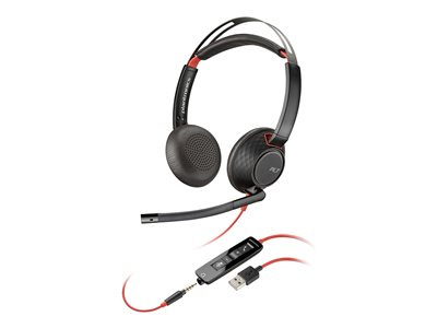 HP Poly Blackwire C5220 - Blackwire 5200 series - headset - på örat - kabelansluten - USB-A, 3,5 mm kontakt - svart - Certifierad för Microsoft-teams, Certifierad för Skype for Buisness, Certifierad för Zoom Rooms, Cisco Jabber-certifierad, Avaya-certifierad 80R97A6