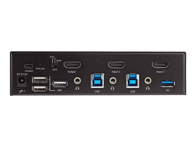 StarTech.com 2-ports HDMI KVM-switch - En skärm 4K 60 Hz Ultra HD HDR - Desktop HDMI 2.0 KVM-switch med 2 portar USB 3.0-hubb (5 Gbit/s) och 4x USB 2.0 HID, ljud - Snabbtangenter för omkoppling - TAA - Omkopplare för tangentbord/video/mus/ljud - 2 x KVM/ljud - 1 lokal användare - skrivbordsmodell, rackmonterbar - TAA-kompatibel