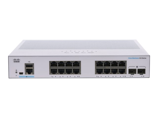 Cisco Business 350 Series CBS350-16T-2G - Switch - L3 - Administrerad - 16 x 10/100/1000 + 2 x Gigabit SFP - rackmonterbar CBS350-16T-2G-EU