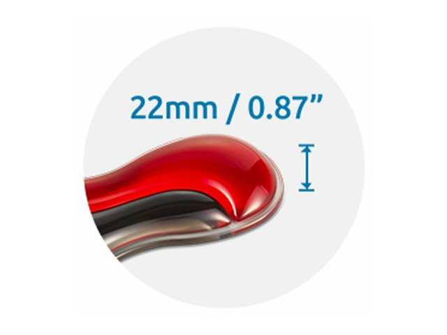 När det smala duo gel-handledsstödet för mus/trackballs används med möss och trackballs med låg profil blir det ett ergonomiskt komplement som har utformats för att optimera komfort. Den gelfyllda kudden följer handledens och handens naturliga böjning och ger optimalt stöd för att minska överbelastning av handleder och obehag. Den innovativa ventilationskanalen håller handleden och handen svala och torra, även efter långa perioder av skrollande och klickande. Färgschemat med två toner ger din arbetsplats en härlig färgklick, och den mjuka, lättrengjorda ytan garanterar lång hållbarhet och ett fläckfritt utseende.