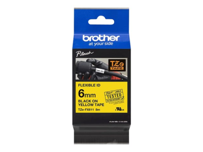 Brother TZe-FX611 - Svart på gult - Rulle (0,6 cm x 8 m) 1 kassett(er) flexibel tape - för Brother PT-D210, D600, H110, H200; P-Touch PT-E310, E550, P900; P-Touch Cube Plus PT-P710 TZEFX611