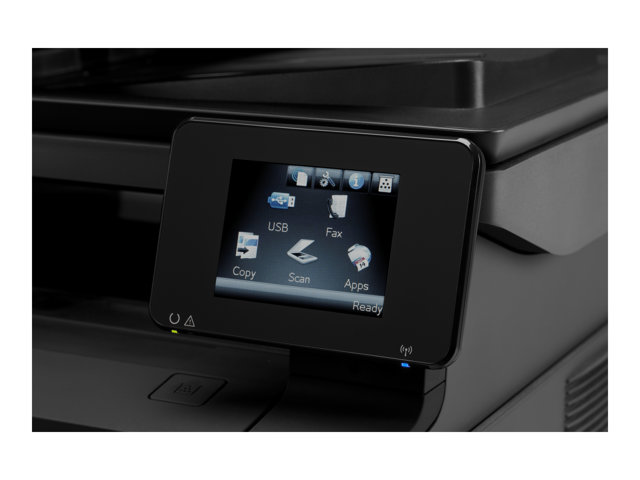 Den här nätverksanslutna MFP:n sätter fart på produktiviteten. Dela resurser via trådlösa nätverk, och skriv ut från i stort sett var som helst med HP ePrint. Förbättra arbetsflödet med åtkomst till affärsappar. Spara tid med automatisk dubbelsidig skanning och kopiering.
