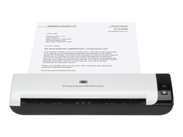 Med HPs robusta, kompakta, bärbara skanner kan du digitalisera dokument på kontoret, på fältet eller när du reser. Den gör det enkelt att skanna visitkort, präglade kort, A4-size-dokument och blanketter med en längd på upp till 34 tum/86 cm, när du vill och var du vill. Skanna enkelsidiga dokument med upp till 5 sidor i minuten och dubbelsidiga dokument med upp till 8 bilder per minut. Skydda skannern med den tåliga transportväskan (medföljer) och förvara den på små, kompakta arbetsplatser.