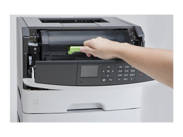 Den nätverksklara, tystgående laserskrivaren Lexmark MS510dn med inbyggd funktion för dubbelsidig utskrift, en 800 MHz-processor med dubbla kärnor, 256 MB standardminne, en standardinmatningskapacitet på 350 ark, en utmatningskapacitet på 150 ark, en utskriftshastighet på upp till 42 sid/min och utskrift av första sidan efter 6,5 sekunder arbetar snabbt och smidigt. På LCD-färgskärmen på 6 cm (2,4 tum) får du hjälp med att hantera enheten och förenkla olika arbetsuppgifter, och med funktionspanelens knappsats kan du snabbt och enkelt ange PIN-koder och andra nummer. Du får enastående utskriftskvalitet på upp till 1 200 x 1 200 dpi med automatisk justering av svärtan.