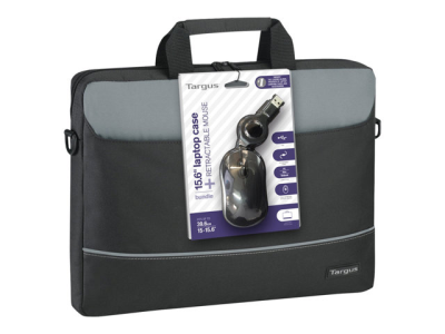Targus Intellect Topload - Notebook-väska - 15.6" - grå, svart - med Indragbar optisk USB-mus BEU3186